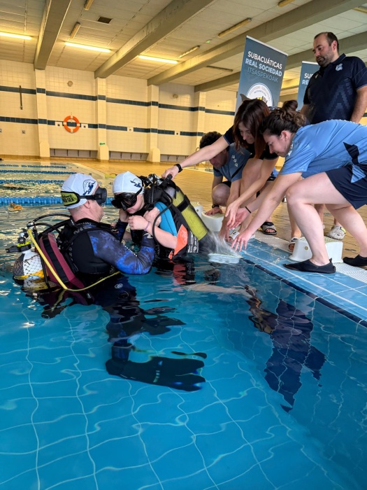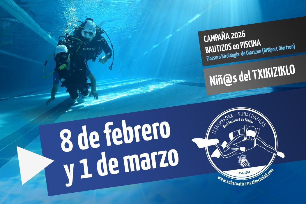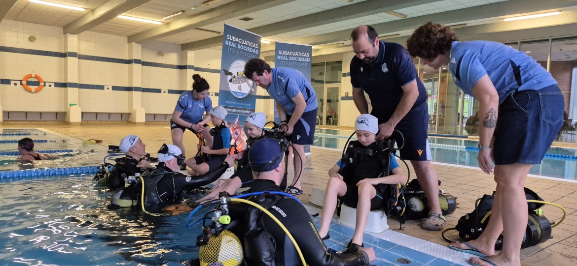 La Escuela de Buceo de Subacuáticas Real Sociedad cierra con un balance muy positivo las últimas jornadas de bautismo celebradas en la piscina del Polideportivo Elorsoro Kiroldegia, gestionada por BPXport Oiartzun. Los domingos 8 de febrero y 1 de marzo, cerca de cuarenta participantes, niños, jóvenes y también adultos, se sumergieron por primera vez para descubrir las sensaciones únicas que ofrece el mundo subacuático.